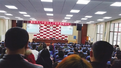 本报讯 12月22日上午,衡阳市八中三鹰学生活动中心会议大厅座无虚席,由该校主办、衡阳市邹毅名师工作室承办的“拔尖人才培养高峰论坛”在这里举行。北京大学教务部副部长、信息科学技术学院“图灵班”导师陆俊林教授以及浙江省信息学奥林匹克竞赛国际金牌教练李建老师受邀来衡“开讲”,交流拔尖人才培养的经验及做法。市八中也在论坛上展示了该校拔尖人才培养方面的成果。我市部分初级中学的拔尖学生及家长、奥赛教练共400余人到场聆听,受益匪浅。