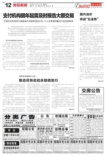 支付机构明年起需及时报告大额交易