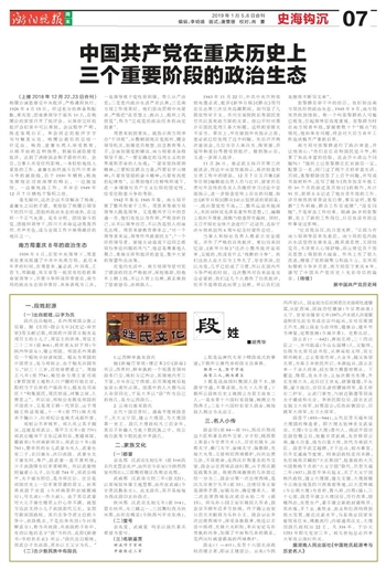 中国共产党在重庆历史上 三个重要阶段的政治生态