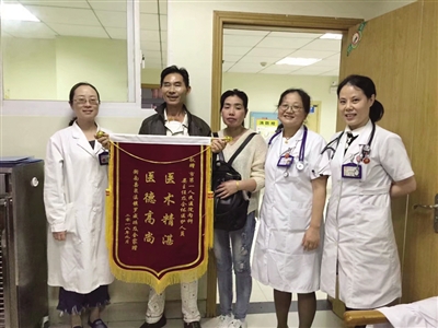 次日,市第一人民医院介入室主任全昌发、心内科副主任何勇为其实施了主动脉夹层带膜支架植入手术。术后,钱女士恢复良好。
