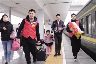 这几天,衡阳市各大汽车站、衡阳火车站、高铁衡阳东站、南岳机场客流呈现井喷状态。为提高旅客通勤效率和保障出行安全,团市委联合市文明办开展“青年志愿行·奉献新时代”2019年衡阳青年志愿服务春运“暖冬行动”活动,300名青年志愿者热情参加,帮助旅客购票、搬运行李、讲解乘车路线等。本次志愿者活动将持续至3月1日,志愿者人数和服务时长均超过往年。