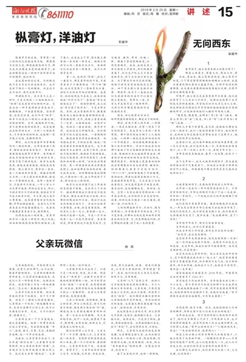 父亲满腹经纶,年轻时有几分高傲,还有几分坏脾气,从不认输。随着年龄的增长,父亲的性格渐渐有所改变,人变得温和谦逊起来。见我们人手一部智能手机,玩微信玩得欢,他竟然像小学生一样地请教我们:“怎么玩?能教教我吗?”