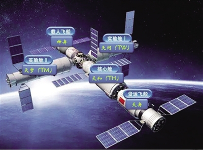 核心舱包括节点舱、生活控制舱(分为大柱段和小柱段)和资源舱三部分,有3个对接口和2个停泊口。