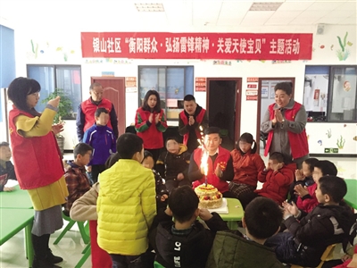近日,高新区高岭办事处银山社区在启迪培智幼儿园开展“衡阳群众·弘扬雷锋精神·关爱天使宝贝”主题活动,给这里的特殊儿童送去蛋糕、书籍,听他们讲心愿、话梦想。 本报记者 谢小青 摄