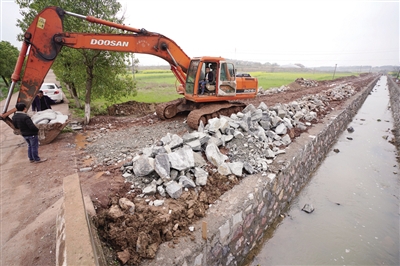 图片新闻 3月25日,石鼓区角山镇和平村,施工人员正在抢抓晴好天气修建银杯干渠。据了解,去年底,石鼓区启动对银杯干渠主干渠的高标准改造,目前,整条干渠主体工程只剩下和平村境内不到300米的一段。施工方介绍,4月1日前,整条干渠将全部拉通。 本报记者 王翟 摄