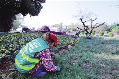 2019湖南衡阳首届国际马拉松赛进入倒计时。3月25日,衡阳市茶山坳景区内,园林工人正在进行赛道沿线段绿化养护工作,确保呈现最佳景观效果,喜迎八方宾客。据悉,截至目前,赛道沿线绿化组景、路面整治工作已经全部完工。