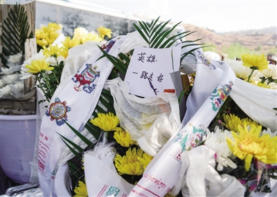 4月2日凌晨1时20分,载有木里森林火灾救火英雄遗体的车队抵达西昌。在通往殡仪馆的路上,凉山群众自发走上街头,手持菊花守候在街道两旁,等待着在火灾中牺牲的救火英雄归来。路面上摆放着菊花,写着挽词:救火英雄一路走好。