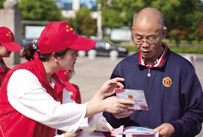 4月7日,高新区高岭办事处银山社区在船山广场举行党代表“三联一帮”进社区暨“衡阳群众”共参与“扫黑除恶”宣传活动。记者在活动现场看到,这里摆放了10余块宣传牌及一块大型签名墙,市民纷纷驻足在签名墙上签名。在宣传展点,穿有“衡阳群众”红马甲的志愿者向过往群众讲解“扫黑除恶”的重要意义及参与办法,他们之后还拉起横幅,以腰鼓队的形式走街串巷,播放“扫黑除恶”宣传音频。