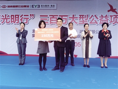 据了解,“慈善光明行”公益救助项目指定衡阳爱尔眼科医院为手术医院。截至去年底,该公益救助项目已开展眼健康检查157场,为8000多名群众进行防盲筛查,手术救助200余名贫困白内障患者,并对已出现白内障手术适应症患者进行了信息登记。