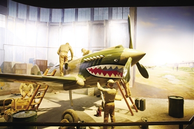 一群飞虎队员围绕着P-40战斗机忙碌的场景,还原了抗战时期那个难忘的历史场面。那时,衡阳机场是空军重要的枢纽站,最多的时候驻扎了2000名美国空军人员和200名美国宪兵。衡阳配套建设了飞机修理厂,工业门类从此多了航空工业这一项。