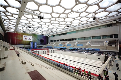 6月2日,市民在改造中的国家游泳中心内参观。当日,国家游泳中心举办国企开放日主题活动,媒体和社会公众来到正在进行冬奥工程改造的国家游泳中心,探秘“水立方”转“冰立方”的施工方案。为满足北京2022年冬奥会和冬残奥会赛事需要,2018年12月26日,国家游泳中心“水立方”正式开始施工改造,改造后的国家游泳中心将在比赛大厅新增冰壶场地功能。 据新华社