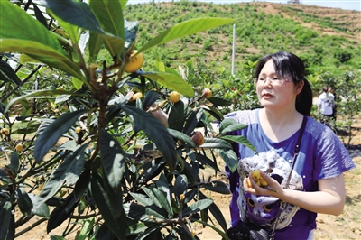 氵米 江生态园负责人单钦敏介绍,目前园内种植白沙枇杷面积4700余亩,计划种植2万亩,将成为省内最大的白枇杷连片种植园。生态园将以点带面,以枇杷产业带动周边村镇种植枇杷,目前已带动周边5个村的贫困户种植逾500亩,同时将不断扩大与周边乡镇的合作,以每镇300—500亩为示范基地,再带动村民去种植,初步估计约带动近2万名村民脱贫致富。