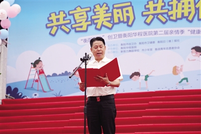 衡阳华程医院院长祝平照对参与和关注本次活动的家长及小朋友们表示热烈欢迎和诚挚的祝福。他说,创建国家卫生城市,是我们每个公民的神圣职责和光荣义务,更是我们医疗单位义不容辞的社会责任。衡阳华程医院作为我市新建的一家二级大型综合性医院,自建院以来一直承载着服务衡阳及周边地区百姓健康的任务。医院秉承“就医一次 服务一生”的服务理念和“爱在华程 美德先行”的社会公益导向,在市委、市政府及相关部门的支持和帮助下,以创建“健康促进医院”为载体,不断满足全民健康需求,建院当天就成立了“衡阳群众品牌——备战志愿协会华程医院服务总队”和“家庭医生志愿服务队”,以规范化、制度化、常规化的活动推进各社区健康促进工作。