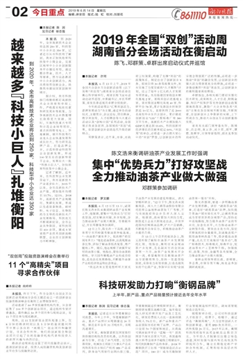 据介绍,我市科技部门将继续抓好高新技术企业培育和申报工作,严格落实税收优惠和研发奖补等政策,力争高新技术企业数量增长取得更大突破。同时,实施科技重大专项和示范企业培育项目,重点扶持特变电工、华菱衡钢、镭目科技等行业龙头企业快速发展和成长壮大,努力研发品牌产品、打造品牌企业,示范和带动科技型企业创新发展,形成100家左右的创新型骨干企业。发展壮大一批“科技小巨人”,加快培育科技型中小微企业。