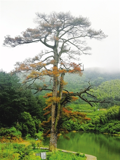 昨日上午,记者在界牌镇将军村将军水库发现,景区标志性古树、树龄已达300年的“将军松”已大部分树叶枯黄,呈奄奄一息濒危状态。据一老年刘姓村民反映,可能是前年给古树砌护坡,主干填得太多,松针去年就开始发黄,今年越来越多。村里也采取了办法,但没起作用。他盼望林业专家前去会诊,拯救这棵赫赫有名的“将军松”。