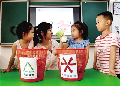 垃圾分类,从娃娃抓起。6月25日,南岳区童心幼儿园组织小班孩子开展科学活动“送垃圾回家”。在懂得垃圾分类重要性的基础上,孩子们通过实践操作初步学会垃圾分类。 廖欣娅 摄