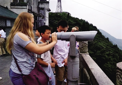 “我们用望远镜看看南岳美景吧。”