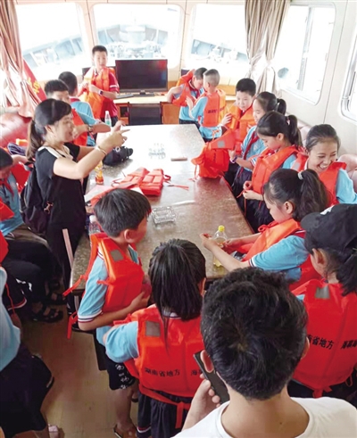 随后,市地方海事局工作人员带领师生来到船上,开展乘船巡河活动,现场讲解水上救援及自救知识。市地方海事局工作人员还告诫师生,暑假即将来临,这个时段正是河水上涨时期,水流湍急,大家不要下河游泳,以免发生安全事故。