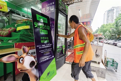 本报讯 冰柜摆在街头,无人看管,里面整齐的摆放着各类冷饮,免费提供给环卫工人、交警、快递小哥等高温作业人群……近日,我市街头出现了一批爱心“无人冰柜”,让在高温下奔波的人群感受到一股“清凉”。