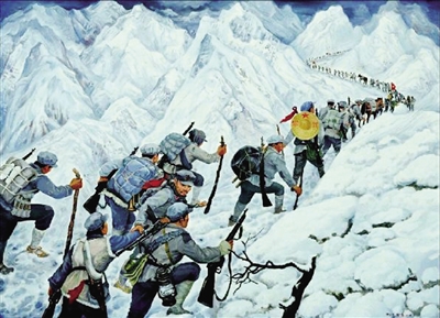 “当时,我爷爷是红二方面军四师十二团团长,他的搭档朱辉照脚上受了枪伤,躺在担架上,如果不设法保暖,人就会慢慢失去知觉。我爷爷把自己唯一能保暖的皮坎肩脱下来,裹住朱辉照爷爷,自己扛着冻。最后,两个人一起翻过了雪山。”