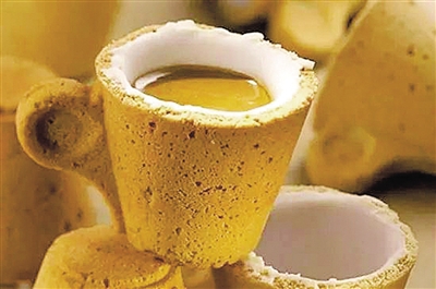 英国的肯德基推出的“可食用咖啡杯”,名为Scoff-ee Cup,其实是用裹着糖的饼干做的,杯壁内侧有一层耐热的白巧克力,盛装一杯热咖啡也没问题。在你细品咖啡的过程中,白巧克力会慢慢融化,咖啡的味道因此也在慢慢变化,更让人回味。最后几口咖啡,不妨就着杯子一起吃,还可以填饱肚子。