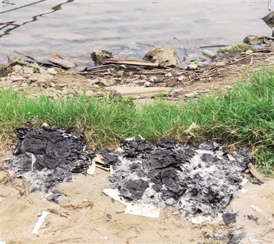 13日下午,记者看到,湘江西岸外滩泰梓码头下游100米水域的江滩上堆着4堆纸灰。附近一位值守趸船的市民告诉记者,中元节临近,一些市民晚上在此焚纸烧烛,既影响环境卫生,也存在安全隐患。 本报记者 胡亚华 摄