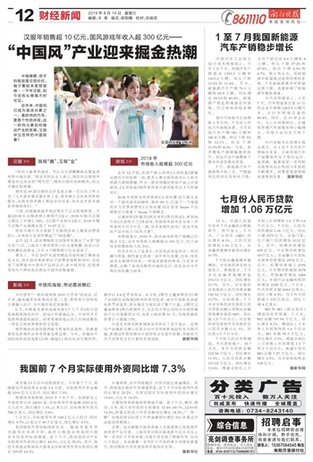 七月份人民币贷款 增加1.06万亿元