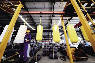 8月21日,衡阳金化高压容器股份有限公司生产车间内,工人们正在赶制一批即将发往巴西的CNG气瓶。据了解,该公司构筑了中东、俄罗斯、北非、东南亚、南美等五大外贸窗口,并与俄罗斯、巴西等20余个国家达成了贸易合作,今年上半年外贸总量同比增长168%。 本报记者 罗盟 摄