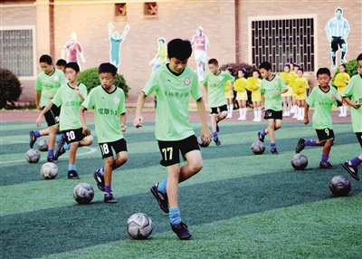 雁栖湖成龙成章学校的足球队在全国鼎鼎有名,近年来在校园足球各类精英赛中五次获得衡阳市冠军,三次获得湖南省冠军,多次进入全国十强,这引起了名校长们的浓厚兴趣。队员们为名校长们奉上了一场精彩的“足球视觉盛宴”。他们在绿茵场上各显身手,踩球、拉球、拨球、带球……动作规范,一气呵成,引得名校长们拍手称好。