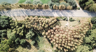 11月4日,记者在南湖公园看到,路边一排排水杉逐渐换上金装,显得格外美丽。连日来,我市阳光灿烂,衡州大地秋意浓浓,风景如画。 王翟 摄