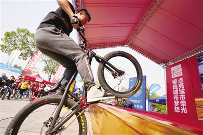 赛道上,身着五颜六色比赛服的运动员们激烈冲刺,风驰电掣,你追我赶。而在竞争激烈的公路自行车竞速赛的同时,主席台附近,现场群众参与的慢骑赛、骑行台挑战赛、单骑独木桥等趣味自行车嘉年华同步上演,观众们掌声、喝彩声不断,唱响“我运动,我快乐”的全民健身主旋律。