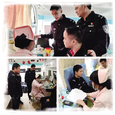 在献血活动中,民警们严格遵守秩序,认真按照医务人员的要求,填表、验血、抽血,配合医护人员进行采血工作。