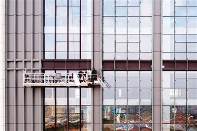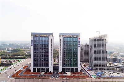 12月9日,记者在高新区陆家新区看到,工人正在对创新中心项目进行亮化和外装修工作。目前,该项目主体已封顶,外装修完成50%,内部精装修已完成65%,预计2020年6月建成投入使用。