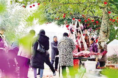 据初步统计,“杜西村农家年货进城展销会”两天卖出2头高山藏香猪,近30头羊,约800斤牛肉。