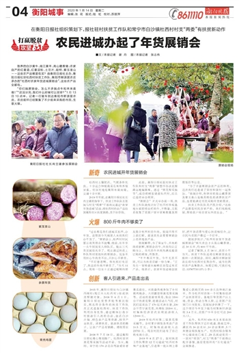 2019年年底,在衡阳日报社社长肖立建的指导下,扶贫工作队队长张闽与村支“两委”干部商议通过“农家年货进城”活动,将杜西村的农产品拉到衡阳市区拓宽销路,卖个好价钱。