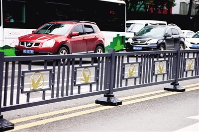 1月13日,记者在解放大道看到,道路中间设立了新样式的交通隔离栏。这种交通隔离栏中间设计为大雁镂空,样式美观,又体现衡阳特色,让人眼前一亮。 ■本报记者 王翟 实习生 唐邓欣 摄