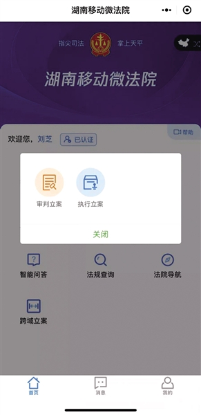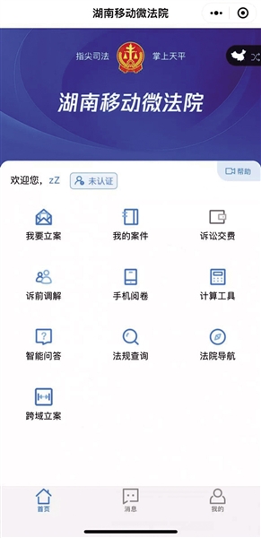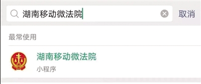 第一步:打开微信小程序,搜索“湖南移动微法院”并关注