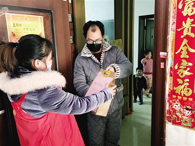 “你们工作很细心,想得太周到了。我们现在急需口罩,谢谢你们的爱心礼包!”家住君昇小区的张先生激动地对上户的社区工作人员说。