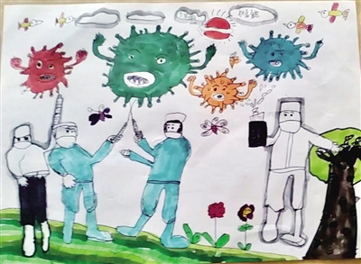 本报讯 “抗击疫情,人人有责!”近日,衡阳7岁女童钟嘉懿手绘多张战“疫”水彩画,希望通过这样一种形式,为湖北加油,为白衣天使加油。