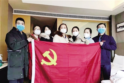 在第一次支部会议上,大家各抒己见,畅谈感想。会议结束后集体与随身携带的党旗合影,并由党员分别与队员沟通,强调如何做好自我防护,保障自身安全。