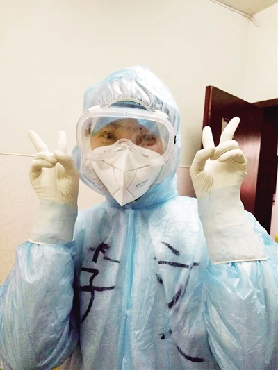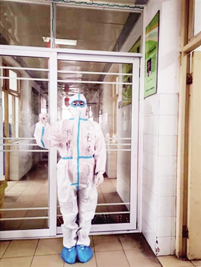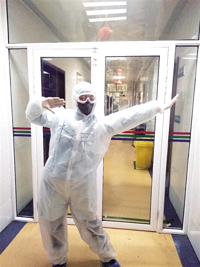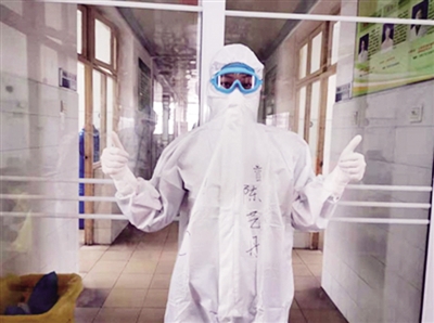 接到门诊的紧急通知,第一个疑似病人马上就来了,我知道我该上“战场”了。第一次面对这么大的疫情,说不怕那是假的,但是在使命和责任面前,“害怕”这个词必须放下。在同事的协助下我穿好防护服,带好护目镜,在主任的鼓励下,深深地吸了一口气,迈着坚定的步伐走进了隔离病房,开始了我第一个病人的接诊。紧接着第二个、第三个、第四个,我已完全没有开始的顾虑。接诊工作变得有条不紊,当我接诊完所有病人已经是下午两点。脱下防护服,我的双手已泡得有些发白,脸上也留下了深深的勒痕,看着镜中那个有些“狼狈”,眼神里却透着自信的自己,匆忙吃完饭又开始了新一轮的工作。