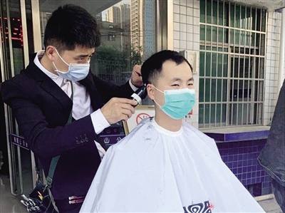 搬来几张椅子、带上几把剃发刀……“临时理发店”就这么开业了。因防护需要,理发师们只能用喷水壸将民警的头发打湿,然后再打理。7个理发师同时开工,让许多民警从“油腻大叔”秒变帅气小伙。享受到这个暖心服务的民警、辅警纷纷表示:“我们坚守在抗疫的最前线,身后站着一群关心、支持公安工作的热心人,有了群众的大力支持,再苦再累,我们也要坚持,警民同心,共克时艰!”