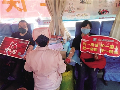2月17日,衡阳市第二人民医院医护夫妻唐威、张美华一起参加防疫特殊时期无偿献血活动。