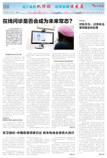 世卫组织:中国疫情顶峰已过 尚未构成全球性大流行