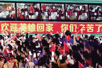 ~~~①衡阳人民万人空巷迎接英雄回家 ②“衡阳群众”为英雄竖起大拇指