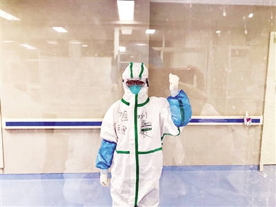 “厚厚的手套,起雾的护目镜,给我们的穿刺等护理工作造成了很大的不便,有时我们也会因为穿刺没能一次成功而感到懊恼,但是患者却总是安慰我们。‘没事’‘别着急’‘慢慢来’是我们在繁忙的护理工作中听到最多的。”刘思敏说道。