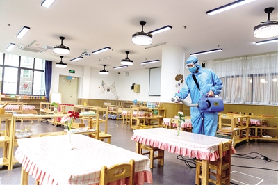 在市政府机关一幼儿园,教职员工正在抓紧打扫园内卫生,并邀请专门的消杀机构进行全面消毒。接下来,还将实战推演幼儿在园一日流程,规范应急事件处理方法,为幼儿园开学工作提供示范和借鉴。“复学后,我们老师会为幼儿讲解基本的防疫知识,教会他们如何做好防护,这也是我们以后工作的重点内容。”该园办公室主任谢娇莲介绍。