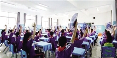 60个学生坐在课桌前,身着校服、右手持扇,跟随音乐《霸王别姬》整齐地挥舞双臂。近日,这段视频刷屏网络,获赞数百万。视频中的老师叫曾悦溪,是怀化宏宇小学的一名小学老师,从2016年成为班主任后,她就开始利用上午第二节课后的20分钟休息时间,带着学生们跳创意舞。