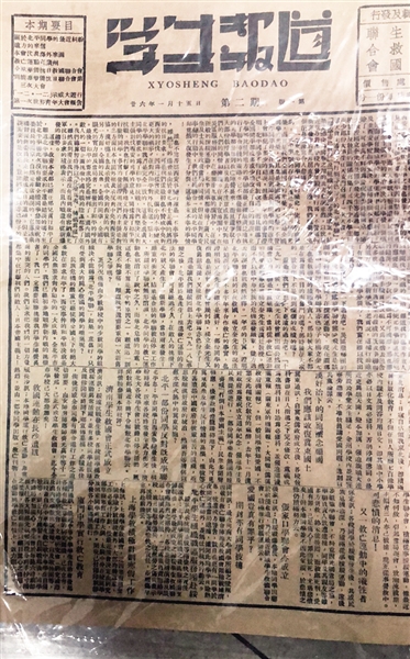 19日上午,在市抗战文物征集工作办公室,记者看见一锈迹斑驳的炮弹残片,一张泛黄的存根和一份旧报纸。名为《学生报道》的报纸上,“救亡运动在广州”“济南学生救国会正式成立”等蝇头小字清晰可辨,长方形的存根上,“抗日救亡捐款”红色字迹赫然醒目。刘鉴华告诉记者,《学生报道》上平实的文字客观记录了学生爱国救亡运动,他们不屈抗争一致抵御外侮,炽热的爱国精神和崇高的民族气节跃然纸上;重约4公斤的炮弹残片是衡阳出土的实物,见证了战争的惨烈。