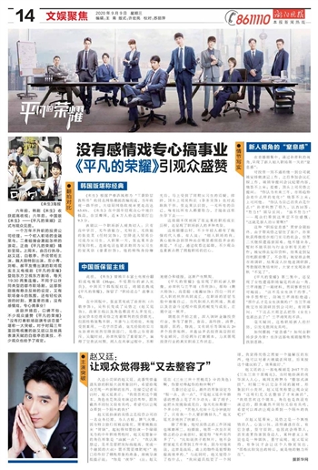 久违小荧屏的赵又廷,此番凭借邋遢失意的职场大叔形象回归,希望给观众呈现一些新鲜的东西。在接受记者采访时,赵又廷表示:“我很喜欢这个剧本,角色也是我没有演过的类型,跟我截然不同但又很有共鸣,希望可以让观众看到一个陌生的我!”